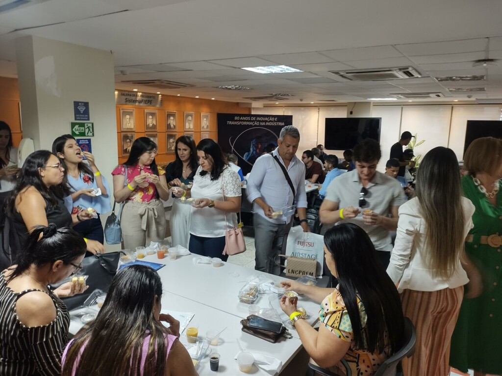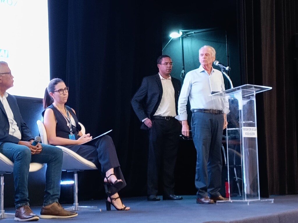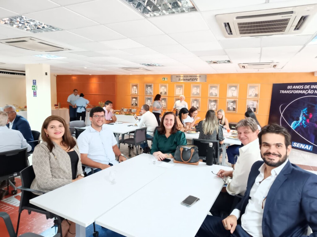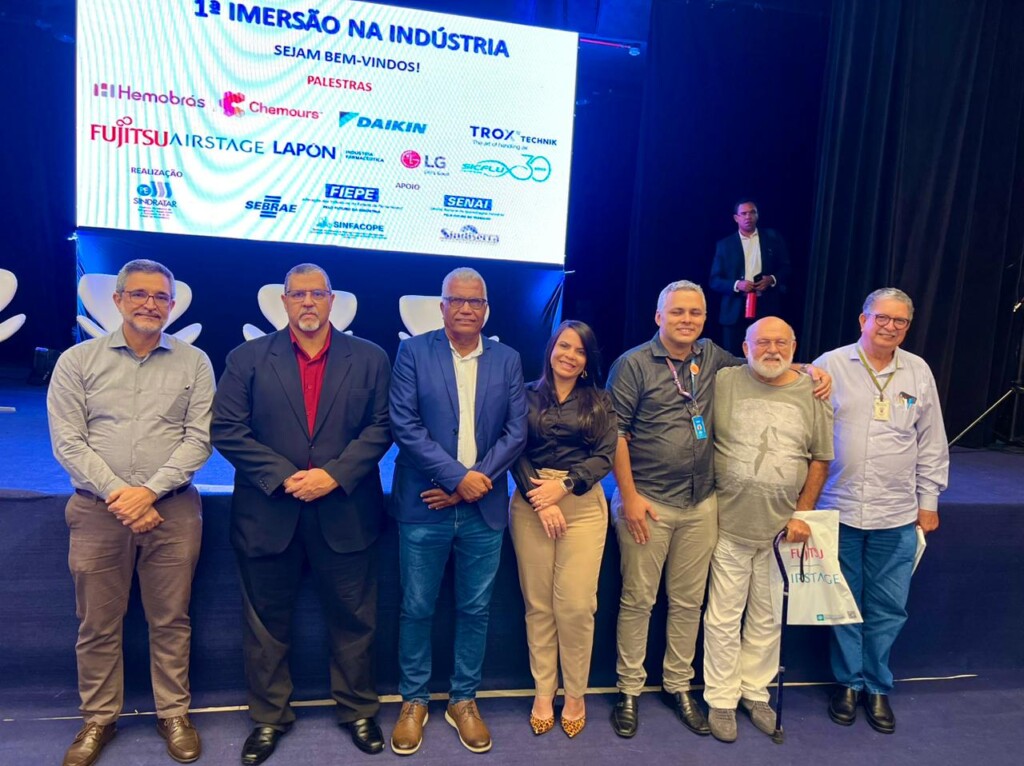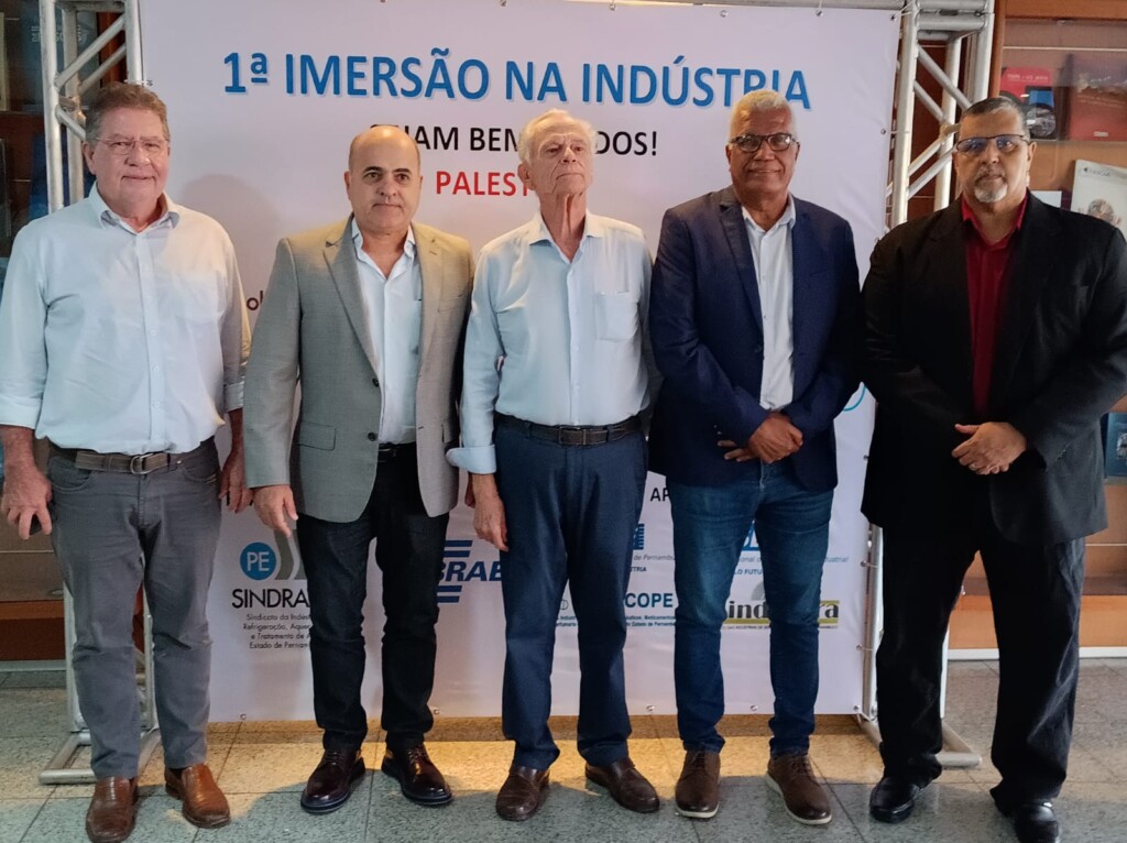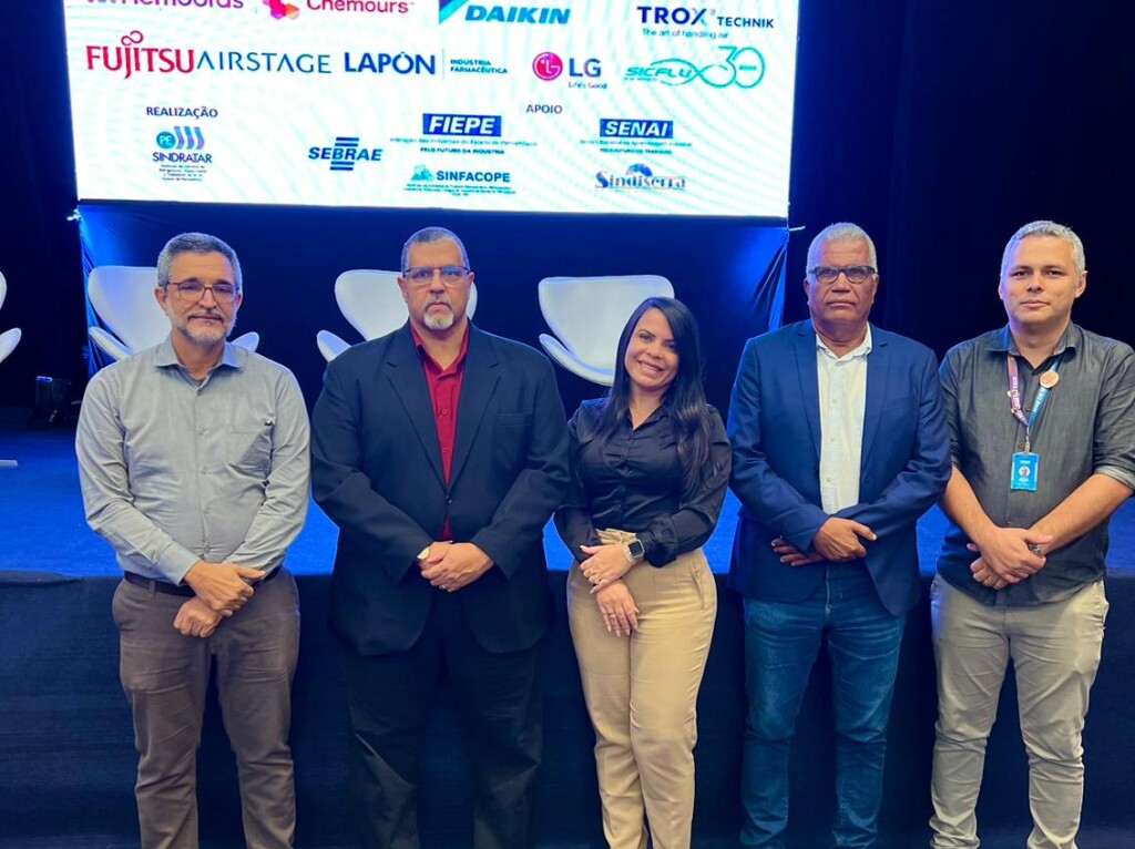PRESIDENTE DA FIEPE RICARDO ESSINGER, PRESIDENTE DO SINDRATAR-PE DANIEL LIMA, PRESIDENTE DO SINFACOPE RENATO DUTRA, DIRETOR EXECUTIVO DO SINDRATAR-PE E GERENTE EXECUTIVO DO SINFACOPE E SINDISERRA ROBERTO GUIMARÃES, E A DIRETORA REGIONAL DO SENAI CAMILA BARRETO QUE FEZ AS HONRAS DA ABERTURA OFICIAL DO EVENTO.